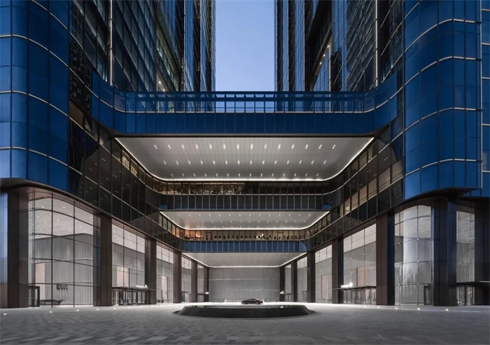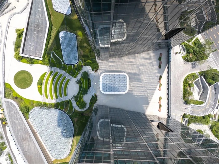 高230米和195米的双子办公塔楼位于场地的西南角,俯瞰场地南侧的真如公园。办公塔楼和商业裙楼在多个楼层连通,为办公人员提供直接进入地下地铁站、首层大堂、购物中心以及裙楼露台层的便捷通道。