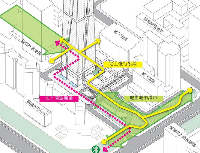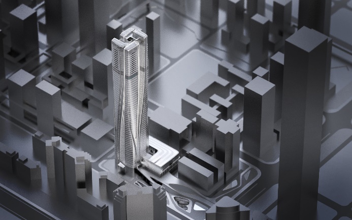 项目位于紧邻红岭的金融产业带,周边建设条件成熟,毗邻地铁6、7、9、14号线以及未来规划的17、24号线,是多区连接的核心位置。“地块是福田旧改的明星区域,周边分布着众多深圳重点高层旧改项目,同时还有银湖山、笔架山、荔湖、洪湖环绕四方,犹如车水马龙中的世外桃源。设计的灵感来源于东方思想:聚气而交汇,城市中的山,水,气如丝带一样,各种元素相互盘旋而上升。同时盘旋上升呼应了城市四象的美好景观。” Aedas执行董事胡庆峰如是说。