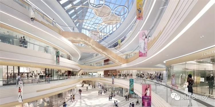 将基地划分为城市界面及海滨界面; 在城市界面设置拥有完整体量的主力商场,大约30,000 - 50,000 平方米,四层高的建筑立面可把商业展示面做到最大化,同时营造并突显出商场的主入口氛围。而在海滨界面则打造偏向户外活动氛围的餐饮休闲主题区,设置多座独特的体验式餐饮特色商铺,建筑的灵感来自在海边自由翱翔的海鸥,将海鸥展翅挥舞的动感通过建筑斜面屋顶的独特造型一一呈现出来。