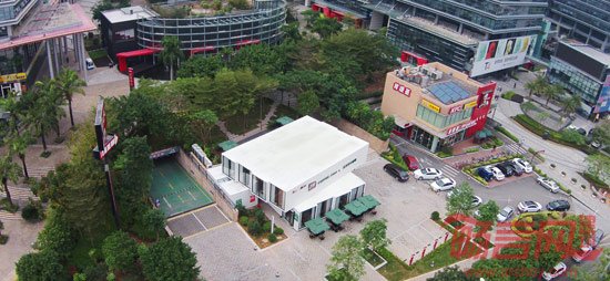 3W龙岗店除了需要设置常规的开敞咖啡区外还希望能够设计相对独立的互联网沙龙区,以满足3W高密度的公开课、读书会等大量活动的场地要求。集装箱作为建筑组件,标准化程度较高,运输与吊装十分方便快捷,可灵活组合内部空间,同时也具有非常高的回收率。基于上述优点我们选用了10组不同规格的集装箱箱体进行整栋建筑的构筑。