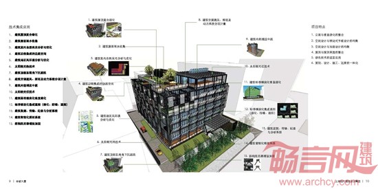 项目设计并采用了众多绿色节能新技术,如自然通风、自然采光、垂直绿化、雨水回用、太阳能热水系统、太阳能光伏发电系统、空气热回收技术、能效监管、智能照明等。改造强调了满足功能、空间形式设计以及可被动适应气候的节能设计、加固设计的均衡,强调了扩展立面设计内涵与形象、围护、采光、遮阳、导风、视野的功能整合,强调了基于建筑功能空间特点的机电适用设计,强调策划、设计、施工、运维的全过程绿色实施。