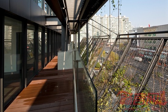 创新性地设计出与建筑一体的垂直绿化系统,既满足隔声、降噪、改善绿化环境、立面效果的基本需求,同时又兼顾了遮阳、通风、采光、立面效果等物理功能;既创新性地将屋顶空间与屋顶菜园结合,在实现了屋顶保温的基本功能的同时,又实现了屋顶绿化,并且增加了办公人员的活动空间和工作情趣。