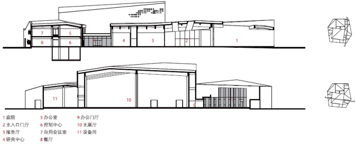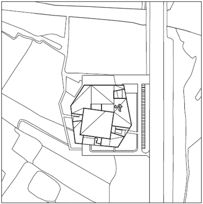 由此,建筑师在此需要一种具有一定抽象性的规约符号。它既能够和原始建筑的写实形式保持距离,又可借助约定俗成的理解暗示出当下建筑与史前文化之间的联系。在此,考古学意义上的“聚落”概念成为了建筑师的灵感来源。正如曾群援引考古学家张光直所指出的,与建筑研究中更为注重空间层面的聚落相比,考古学意义上的聚落概念跨越了不同学科,它是关于特定文化的基本分析单元,一个静态的、占据了特定时间和空间范围的单位,通过对不同文物遗存的碎片化信息进行研究而缀合成的一个可阅读体[7]。具体到设计中,聚落既体现在组成博物馆的一系列多边形坡屋顶几何单体,也存在于不同单体之间的组合关系上。不同尺度的多边形几何单体包含了不同的使用功能——常设展厅、临时展厅、报告厅、办公室等,它们在形态和使用层面上均具有极大的独立性。与此同时,大小不一的单体根据流线与功能进行组织,以最大的常设展厅为核心,进而“缀合”成为一座完整的博物馆。各个单体各司其职而又相互依赖,进而构成一个有机整体,使得马家浜文化博物馆成了一个类比的聚落。