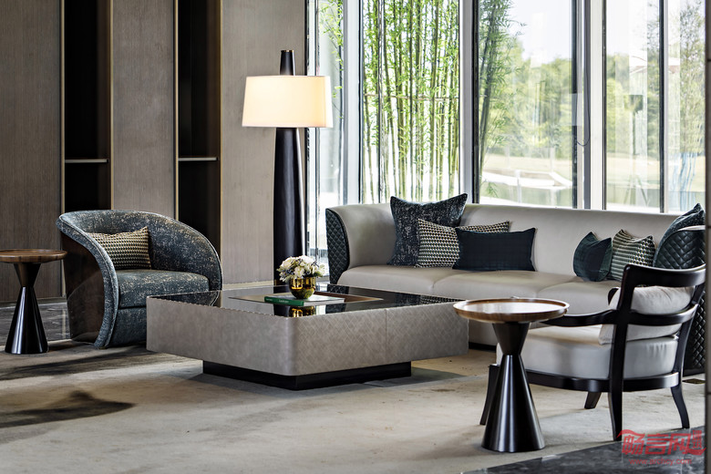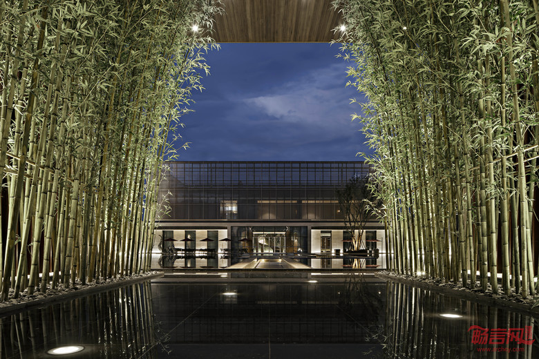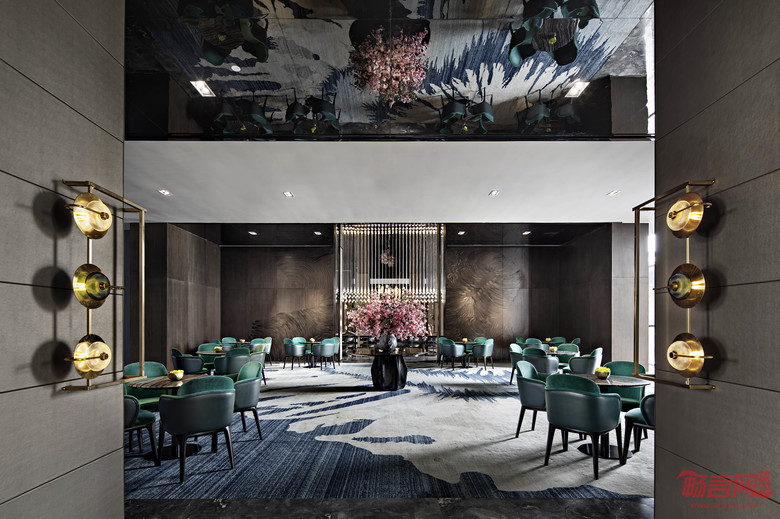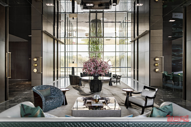 伴随纵深感的层级递进,洽谈区的外景内引使人顿生“洞明”之感,自然光线在纵向延伸中开启一场景与影的互动游戏。由镜面天花构成的异次元维度吸纳四时之景的轮转变幻,成为装点空间的最佳载体。