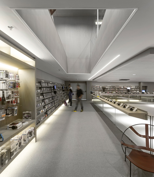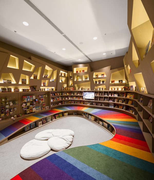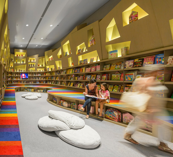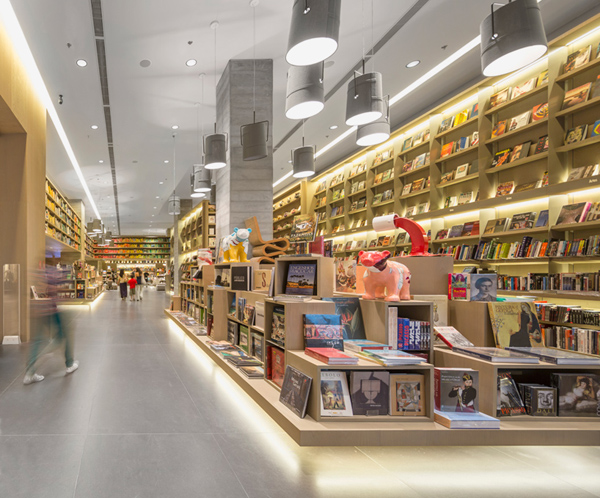 虽然很怀疑放得那么高、封面颜色近似的书是不是已成为装饰品、要怎么拿下来,但是从室内设计的角度来看,这样的布置着实让人眼前一亮,说不定会就此爱上逛书店呢。