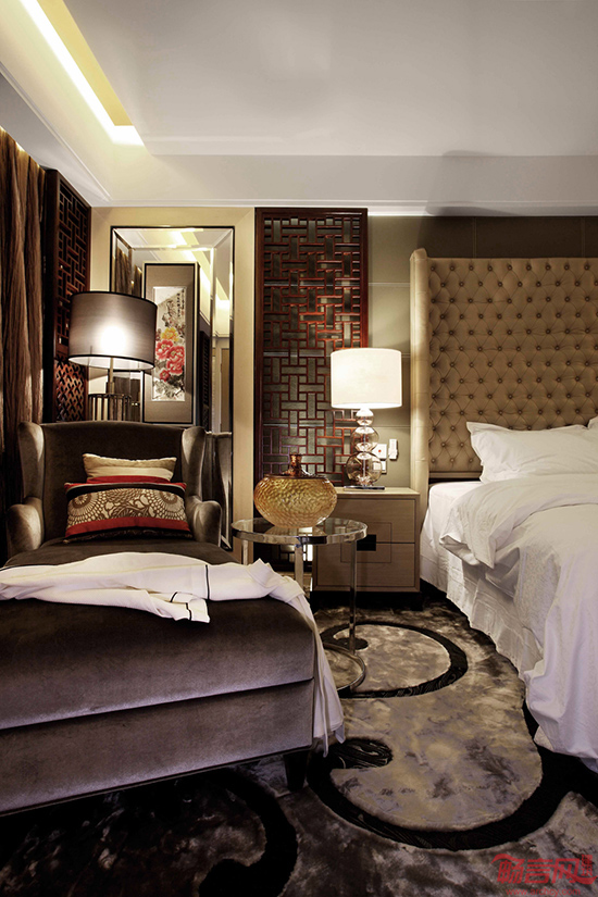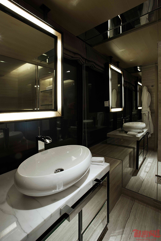 设计说明:此样板房表现的是现代奢华的表现手法,使用金属材质及皮革作为诠释,主色调以浅蓝色、黑色及暖灰色,整个空间色彩跳跃明快,冷暖过渡自然,黑钢与镜子的使用使空间有虚有实,营造出高品位的视觉享受及体验、前卫、时尚、低调的奢华。