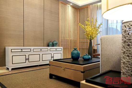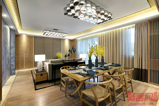 取自天然的设计素材最得传统中式神韵,如琢如磨的细腻工艺让整个样板房设计质朴而清雅,原木材料的大量运用带来如沐清风的舒展惬意。少许禅意的营造提升了空间的文化韵味,一丝不苟的线条让空间大气通透,色调把握与灯光照明极爲协调、恰到好处。