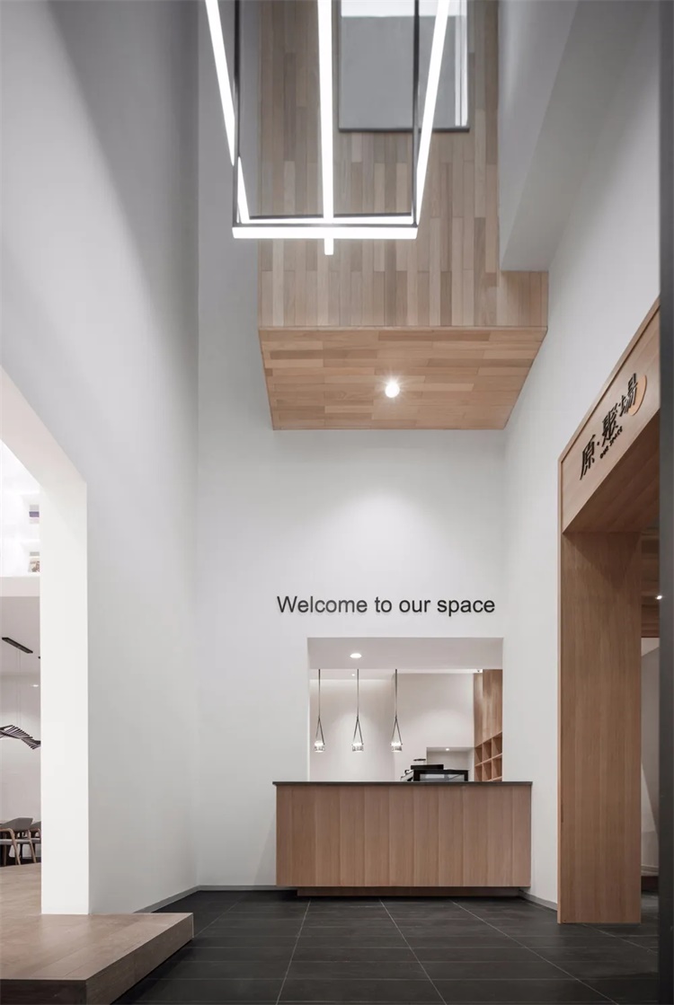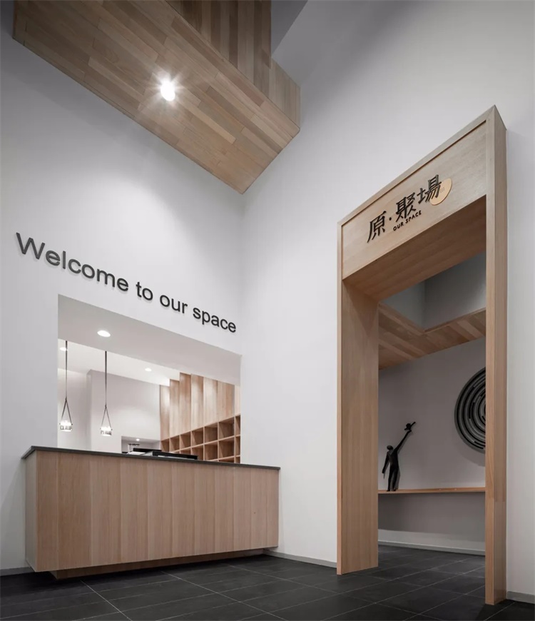 温暖明净的原木搭配清爽的黑白色调,营造舒适的空间感,前台的特色化设计贴合航空主题,树立标识化初印象体验,在整体的一致性中,预召不同区域的差异化,感召未来生活的想象空间。