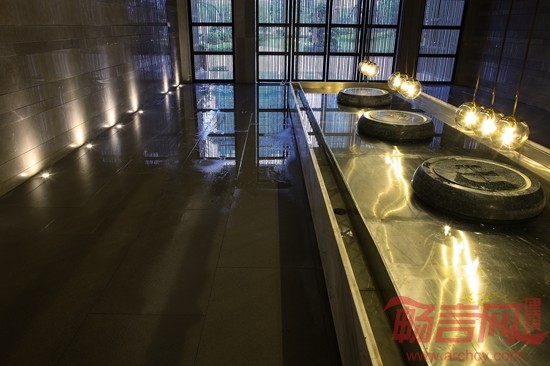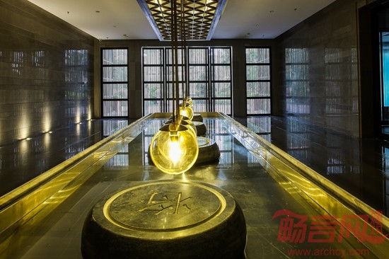 在建筑形态上,强调符合东方人审美情感的建筑气势和庄严的秩序感,烘托企业稳健而不乏创新精神的特质。林开新没有一味地将设计与社会文化历史传统强拧在一起来作崇高,而是通过适当的情景设计,几何线条的组织和延伸,构成耐人寻味的空间格局,让置身其中的人们可以轻松自然地来感受传统,品味潜移默化的历史痕迹,从容不迫地回忆过去时光。