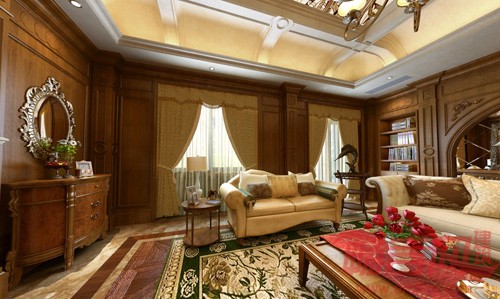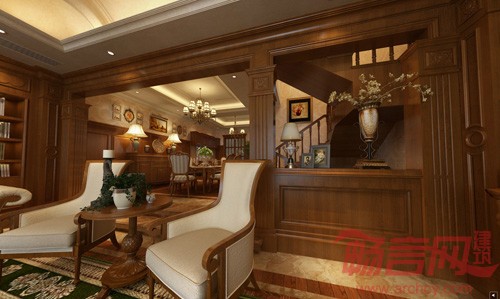 本案大量应用实木元素,通过素描手法来实现空间的整体层次,整个设计元素的构想灵感来自于法国的卢浮宫。本人在参观完卢浮宫后对其雕塑馆映像颇深,石材有层次的大量应用非但没让空间显得单薄而是让空间更加气势磅礴,因此在设计本案时也采用了相同手法——少数材料运用法来打造该空间。合理的细节处理、有层次的节奏变换,让空间统一和谐且张力十足。