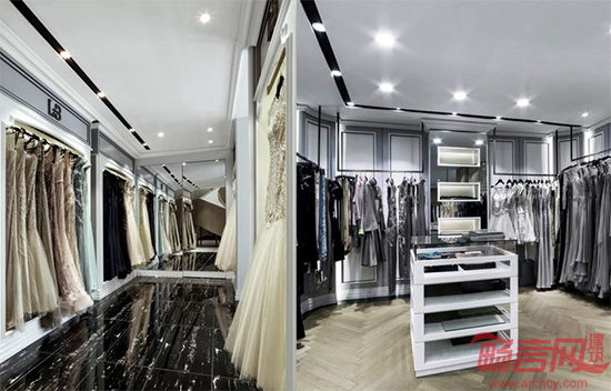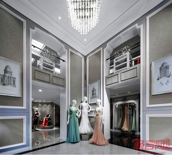 设计理念:意式高级定制的显赫与欧式风格的尊贵血统一脉相承,相得益彰。巧妙的空间分割,将视觉焦点凝聚在备受瞩目的礼服上,辉耀的水晶吊灯与曼妙的高端礼服交相辉映。精炼的复古墙饰与欧式建筑挂画传递出专卖店卓尔不群的气质,灰梨木与灰茶镜的运用糅合了古韵与时尚的底蕴。此品牌店设计将高级定制的奢华与高雅,古典与现代,烘托得恰到好处,名媛新贵的气韵神采摄人心魂。