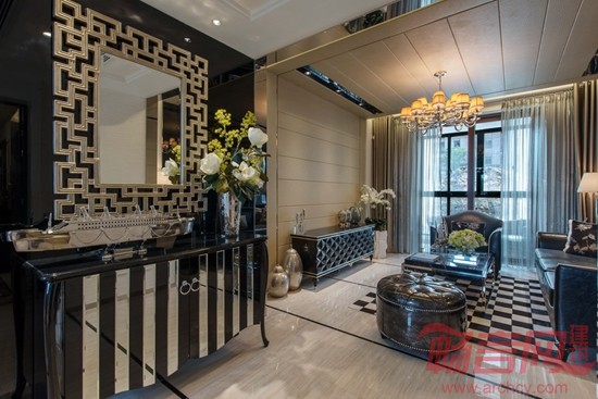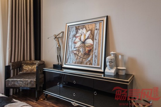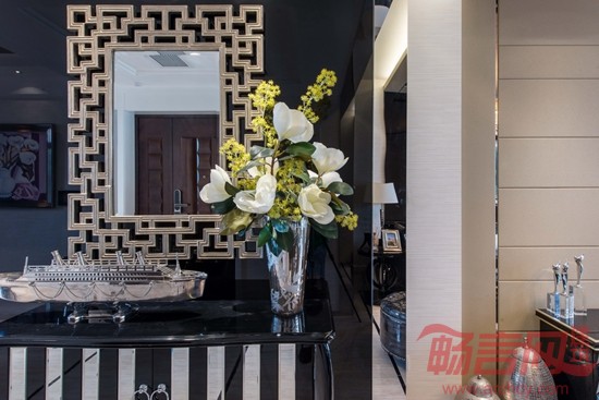 本户型是三套样板房中面积最为经济的一套。风格定位在现代摩登。一个带卫生间的主卧室,一个儿童功能房,客厅餐厅厨房客卫功能齐全。而112平方米的面积,是现今购房者需要的主力房源。以银色白色为主基调的材质以及家具软装,使室内充满了摩登时尚的感觉。镜面的合理利用,不仅强调了室内现代的气息,同时也增加了房间的空间感。