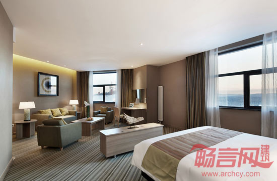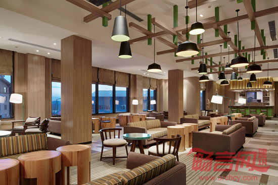 空间的灵感来自于长白山初春绽放的绿意,盎然生机顷刻间让人精神焕发,获取这一大自然的力量使得空间通透轻盈,便是设计的初衷。长白山初春景色与宜必思品牌色交融,成为流动在整个空间的点睛用色,在将户外景色完美延伸至酒店内部的同时,也形成了长白山宜必思尚品酒店自然活泼、时尚有趣的色彩性格。酒店选用木色为主的深色家居,令稳重质朴的气息传达至整个空间,活泼生动不失大方雅趣。在保持其连锁酒店风格的界定上,无论是大堂抛物线形层叠的天花,会议室绿意渐变的地毯,还是餐厅中央的地灯、透视感的屏风等装饰小品,都融入了轻快、动感的感情基调。而大堂与大堂吧的会谈区、餐厅用餐区的开放性空间设计,更巧妙模糊掉了商务功能区带来的严肃压抑的弊端。卧室的暖色光线则为度假的身心送去了恰到好处的舒适美感。毗邻长白山国际度假区五星酒店群的宜必思尚品酒店妙趣横生的设计,令它更显独具一格。