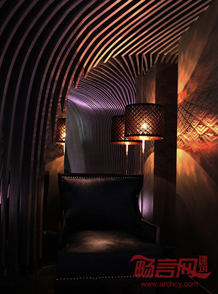 相对于传统KTV,V-plus更希望通过设计引领一种全新的娱乐文化。设计中引入了无限西湖与湖底漫游的设计理念,通过顶面与地面的镜面设计,将西湖美景引入室内,使Vplus成为西湖延伸的一部分,让人感受到湖中有歌,歌在湖中的曼妙境界。