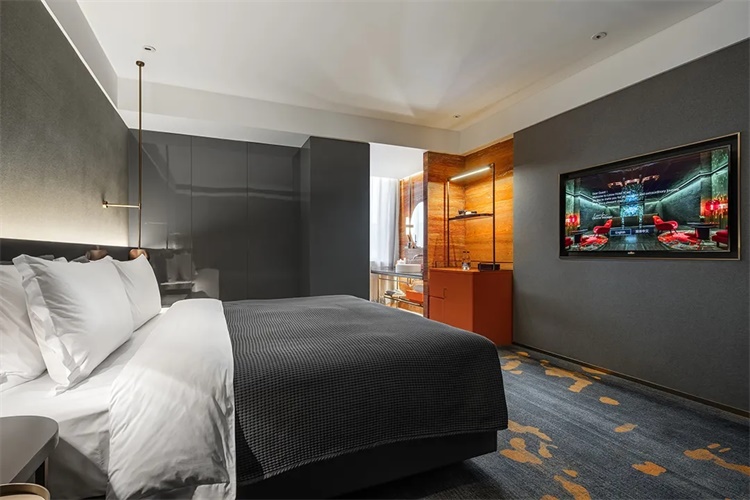 酒店客房处处可见设计心思,精雕细琢的室内设计,配上定制家具,丰富多样的质感和壁饰,有如为每间房间编织出一个触觉绣帷。