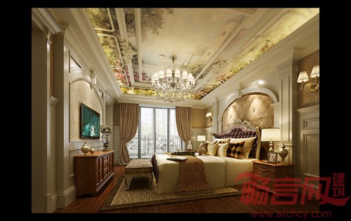 本案采用英式与法式相结合的手法营造了一个丰富、浪漫的居住空间。客厅白色的墙面再辅以独特的中式风格的花鸟墙纸、浪漫的主题花卉手绘,让整个空间有种别具一格的韵味。特别的软式搭配手法体现本案精致而又浪漫、低调而又奢华的豪宅本色!