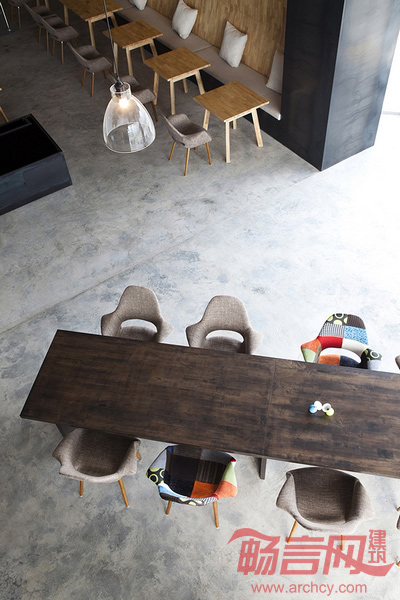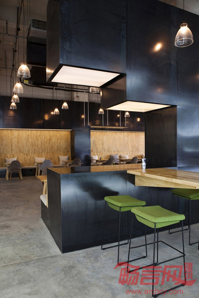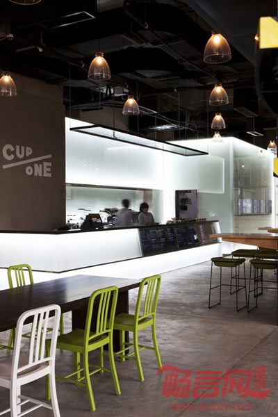 咖啡厅、餐厅、图书馆以及其他类似公共场所已延伸成我们生活空间不可替代的活动空间。纬度建筑承接的这个室内设计探索着将传统咖啡厅所具有的功能与公共视觉艺术相结合的可能。