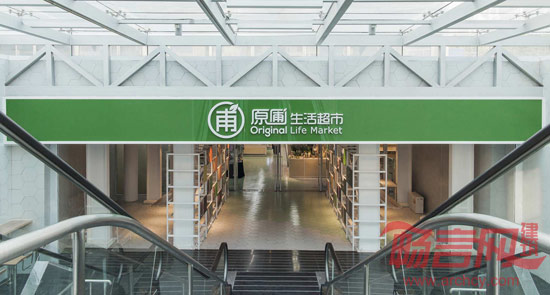 原圃生活超市位于北京市东城区新东路幸福广场地下一层,占地2,000平方米,致力于销售有机产品。超市总体规划分为两个区域,入口处为玻璃房半室外空间,并由两部滚梯接送消费者购物。宽敞的内部空间则用于展示和制作食品。半室外空间处安放了休息区,不仅令人们感到超市的贴心的服务,同时还会吸引周围路过的人们进入到超市内部。