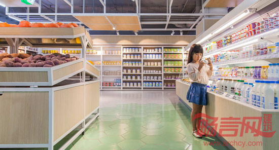 这种家具生产与组装的方式不仅降低了建造成本,同时能够为超市的运营提供灵活、便利的组合方式。