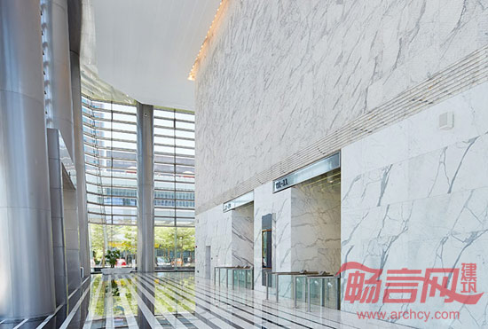 带有精美水纹的墙体配以黑白相间的图案铺就的大理石地面,简洁高雅,明朗干净。不仅如此,在许多细节上,设计师们都精心调配,进行了缜密的处理,以多变的形态进一步给空间增添了一丝活力,同时又体现出环境对人性化需求的考虑,使得人们在此进行独具品质且充满创意韵律的办公研究与交流会客。