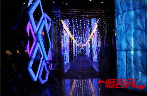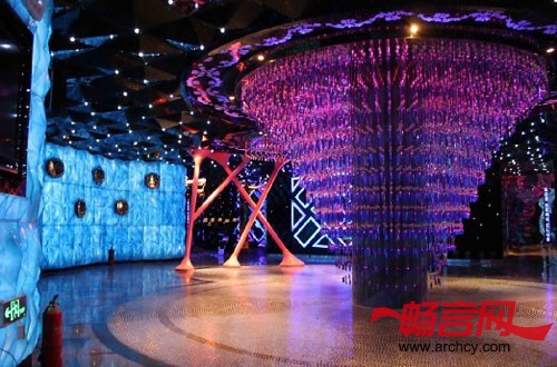 通过折线的造型处理运用透明订制的亚克力造型与灯光的完美搭配,营造出美轮美奂的水世界。给人眼前一亮的感觉,公共走道的天花水波纹不锈钢与LED灯不时的变化,加上墙面折线镜面与亚克力灯光的变化给人一种一步一景,纸醉金迷的视觉效果。