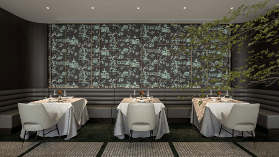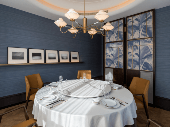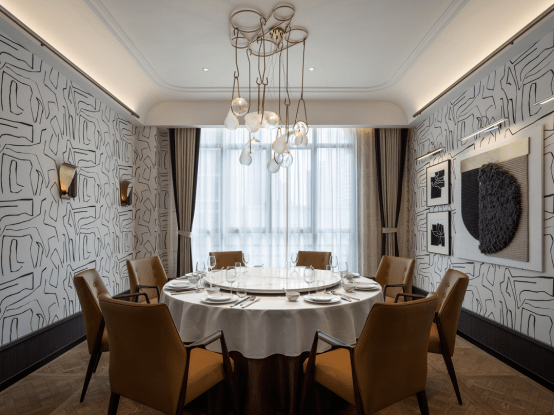 沙发座与造型屏风成为餐厅的第二迎宾点,民国的优雅于丰富的肌理和繁茂的图案中悄然生出,在东方怀旧气息的环绕中,宾客仿佛正经历一场时光回溯。