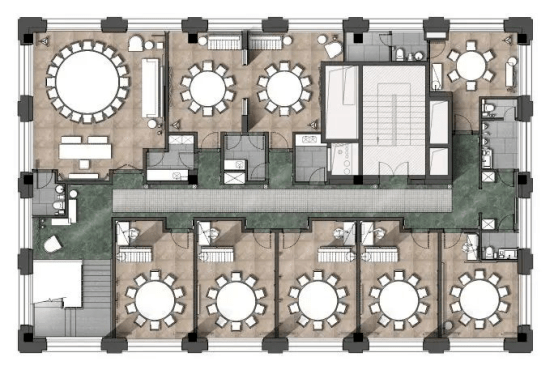 雅座设计充分借鉴了海派美学观念,也回应了含蓄内敛的东方风格。清雅沉稳的色调应用于不同材质,呈现出丰满而不凌乱的空间视感。