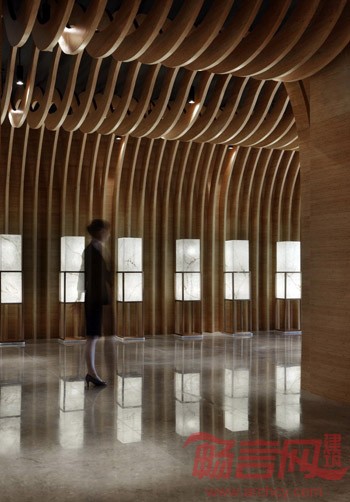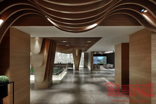 设计师摈弃了售楼处一贯的设计手法,而是把首誉销售中心打造成都市中的一片绿洲,带给人清新脱俗,回归自然的感受。置身其中,似有一片凉意沁入心脾,清澈自然。水的意象无处不在,心境也如被水洗涤过一般清澈通明。