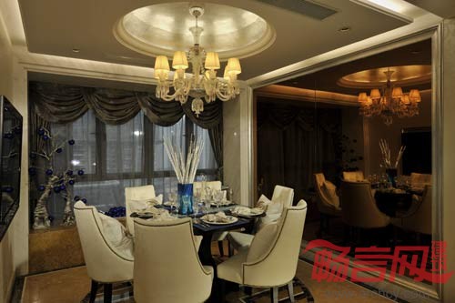 进入客厅设计师把厨房侧面墙拆除,这样厨房与客厅更亲密,空间利用更时尚,客厅以方正的气势来打造出奢华,圆形的餐厅以古典经典的风范来完善。