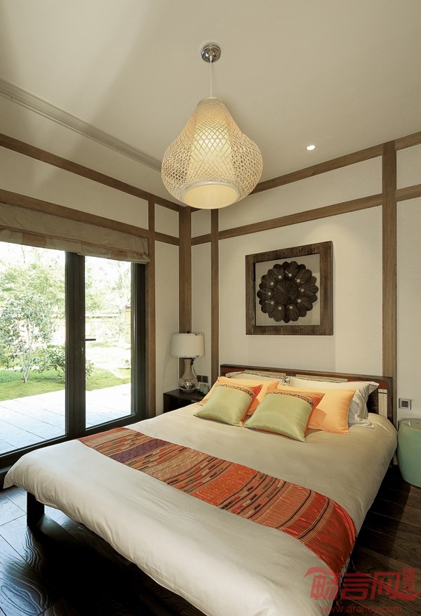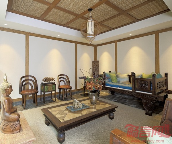 充满南亚风情的家具搭配着色彩缤纷的装饰品,深深浅浅不同层次的颜色给原本沉重的木色增添更多活力,体现出南亚热情淳朴的民风民俗。度假气息铺面而来,吸入的空气也像是南亚特有的湿热味道,混着自然的木香、花香、沉香,不出国门也能享受这轻松悠哉的假日体验。
