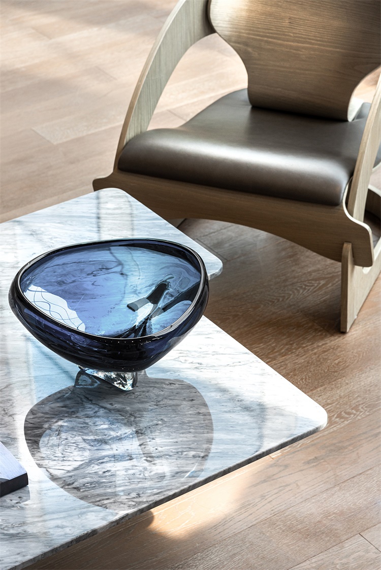 文学作品中有多重含义,艺术也可以透过不同角度分析, 在空间中也到处存在着复杂与矛盾为了与块面分明的沙发形成对比,扶手椅、装饰灯具均选用圆润的造型,尖锐与柔和的线条交错排列,呈现出和谐的空间语汇。
