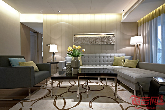 本样板房设计案例以色彩诠释时尚现代的意式风格,知性稳重的高级灰、透明辽阔的深天蓝配以明朗积极的柠檬黄,看似冲突的三种色彩搭配在壹起産生奇妙的视觉效果,让人联想到文艺复兴时期的意大利,严谨而烂漫,雅致而内蕴。简洁的线条与规整的家具相互衬托,整个设计将古典主义风情融入现代生活,弥漫着古罗马的理性色彩和人文关怀。空间氛围的营造手法洗练而精准,充满理性与智慧。