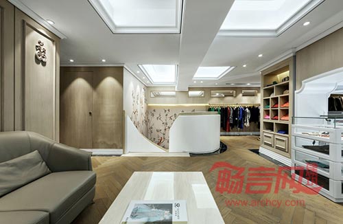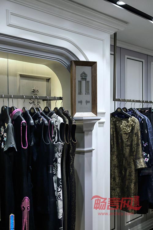 设计说明:意式高级定制的显赫与欧式风格的尊贵血统一脉相承,相得益彰。巧妙的空间分割,将视觉焦点凝聚在备受瞩目的礼服上,辉耀的水晶吊灯与曼妙的高端礼服交相辉映。精炼的复古墙饰与欧式建筑挂画传递出专卖店卓尔不群的气质,灰梨木与灰茶镜的运用糅合了古韵与时尚的底蕴。此品牌店设计将高级定制的奢华与高雅,古典与现代,烘托得恰到好处,名媛新贵的气韵神采摄人心魂。