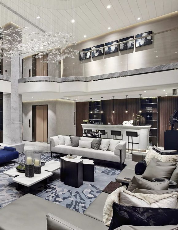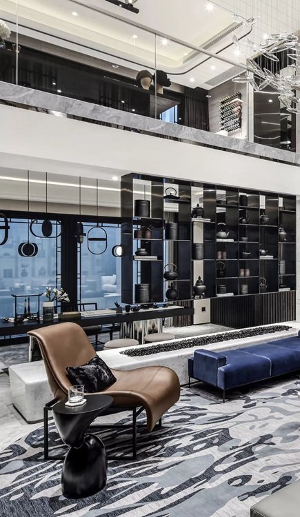 就地下生活空间而言,设计不只是关注会客的基本功能,更把目光投向未来室主人的生活方式。将主要空间留给社交形生活方式设计的会客厅,会客厅又巧妙地将吧台区与书房品茗区串联。