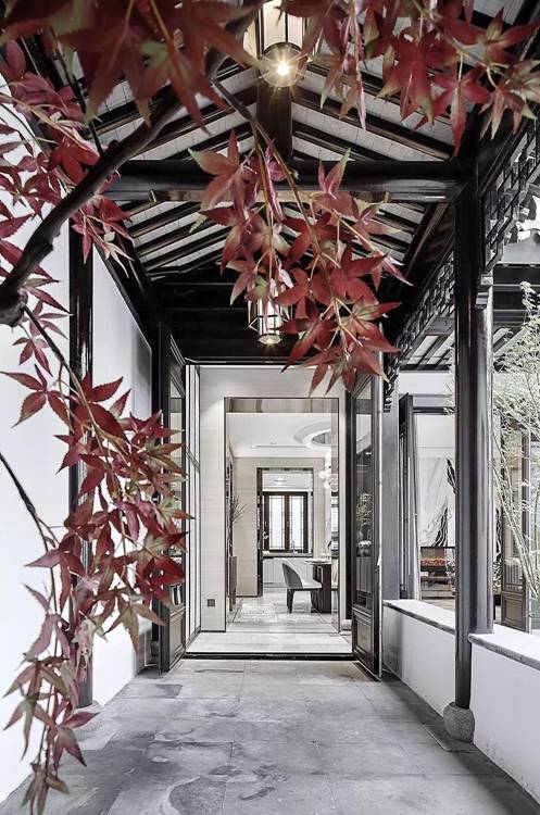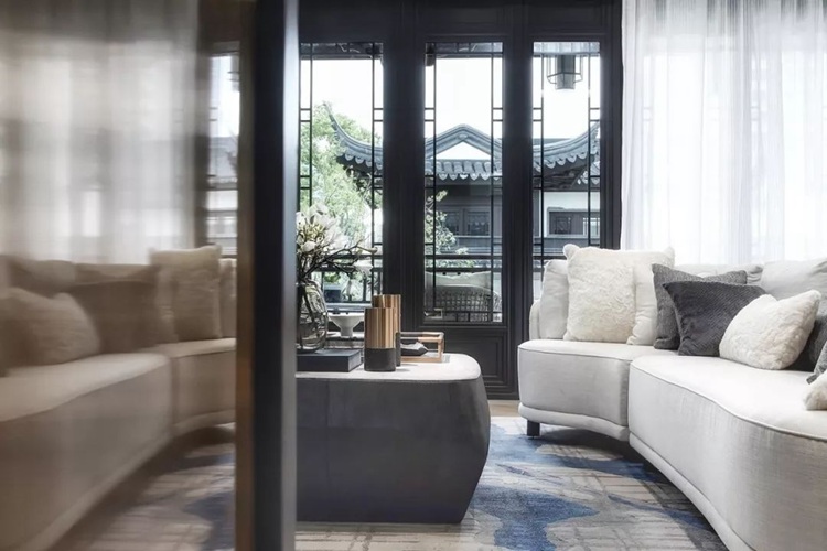 白墙粉黛的水墨江南、柳叶飘雨的古城嘉兴,被设计师巧妙的搬入到居室之中。