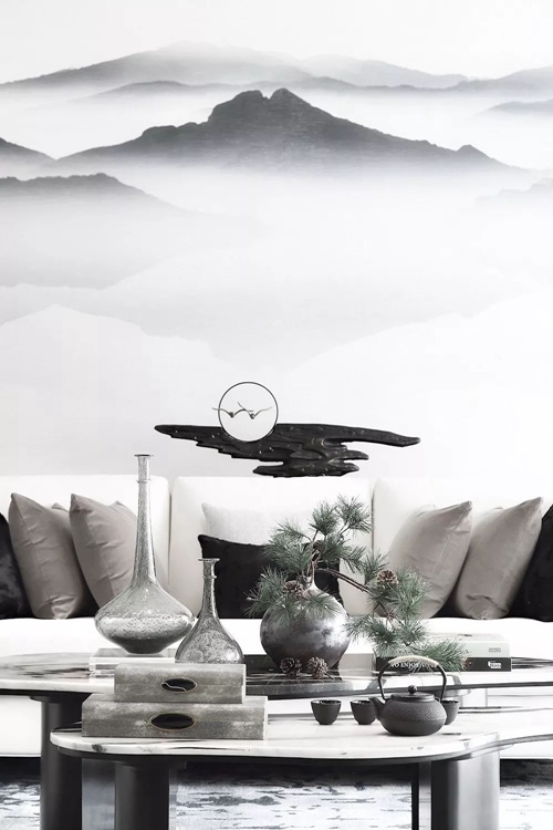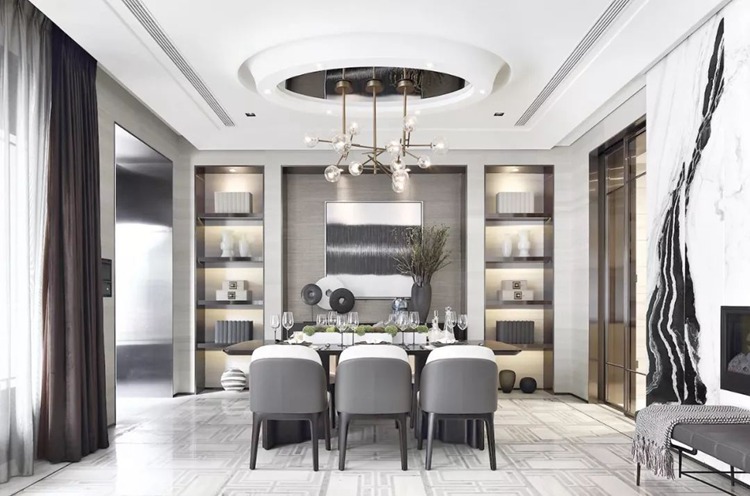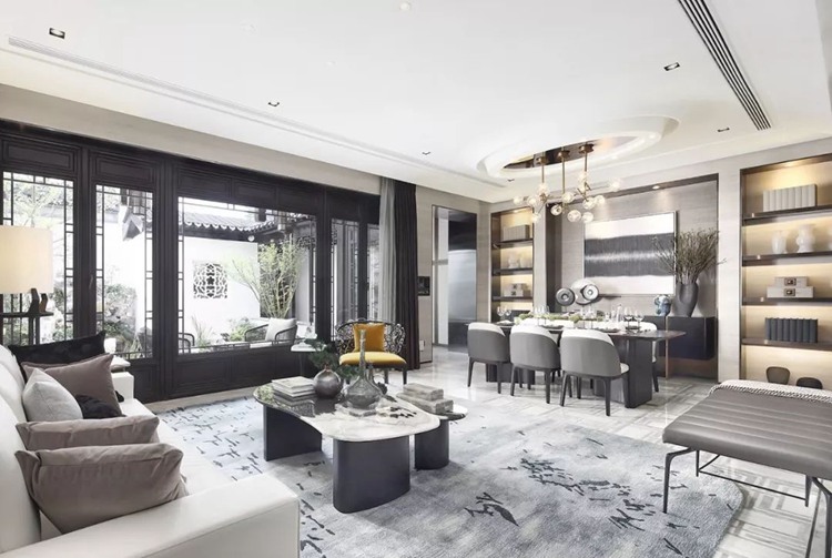 郑板桥曾说:“室雅无须大,花香不在多”,恰能形容本案的客餐厅——意境的营造结合园林,将自然、山川放入自家庭院,日日把玩,何其幸福!