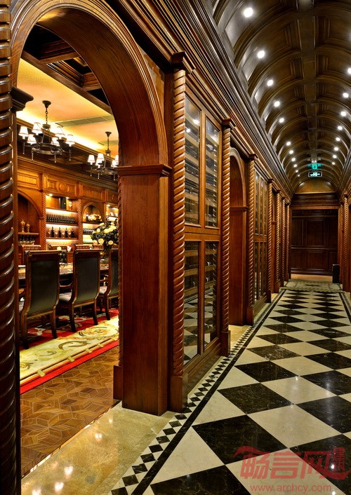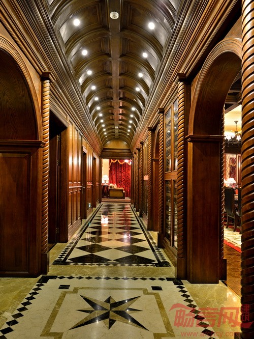 在高端场所追求欧风的潮流下,设计师必须要面对的现实是:第一,欧式设计的出彩度有限;第二,欧式空间的设计往往只追求形,忽略轴线、动线设计的精髓和尺度的把握。本案力图在有限的空间及层高的限制下,竭力寻找设计的本质性语言,而不仅着眼所谓欧式的符号,同时在地毯和地面设计方面做了相对混搭的反差对比。在灯光方面,因为传统欧式建筑室内并无现代灯具,因此对反光槽这类设备尽量做了消解。