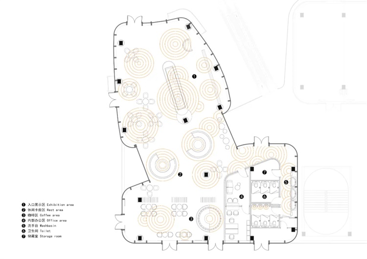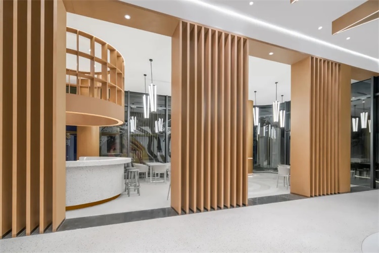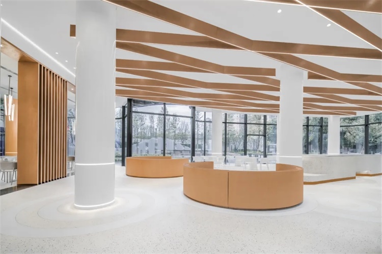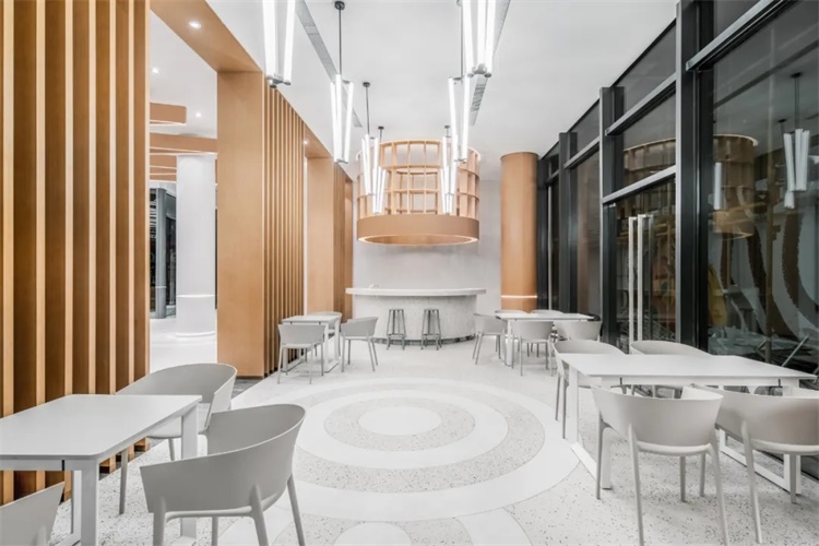 将涟漪引入室内空间的主题设计,空间中延续弧形语言,制造秩序,强化空间体验感。