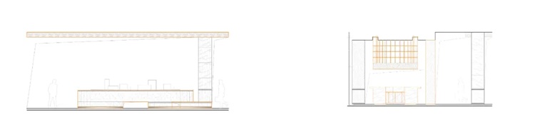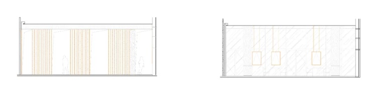 咖啡厅整体空间保持开放性,咖啡区与展示区相邻,使用木制隔断作分隔,使两个空间相互联通又可以保持一定独立性。