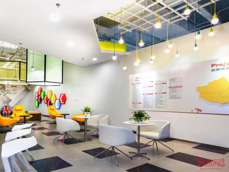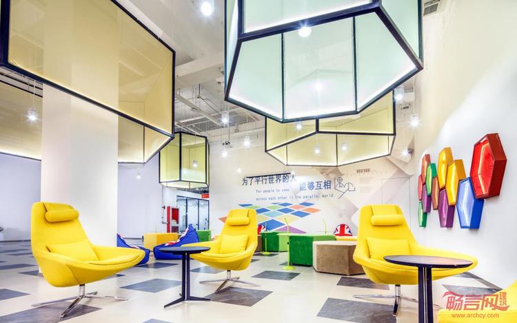 由于项目处于地下空间,缺乏自然光的摄入,因此旨在打造明亮的办公场所,尽量减少空间元素,结合多种照明形式及高纯度色彩进行设计,又以蜂窝为灵感,构造稳固且灵动的空间结构,塑造空间便捷性、趣味性,提升协同办公的能力。