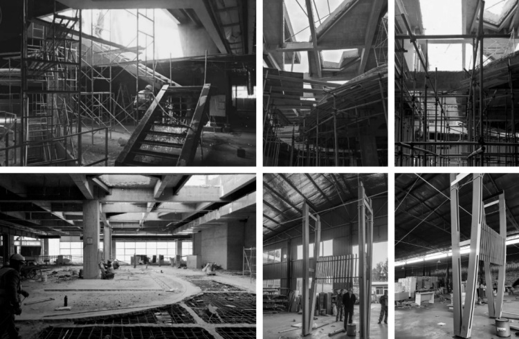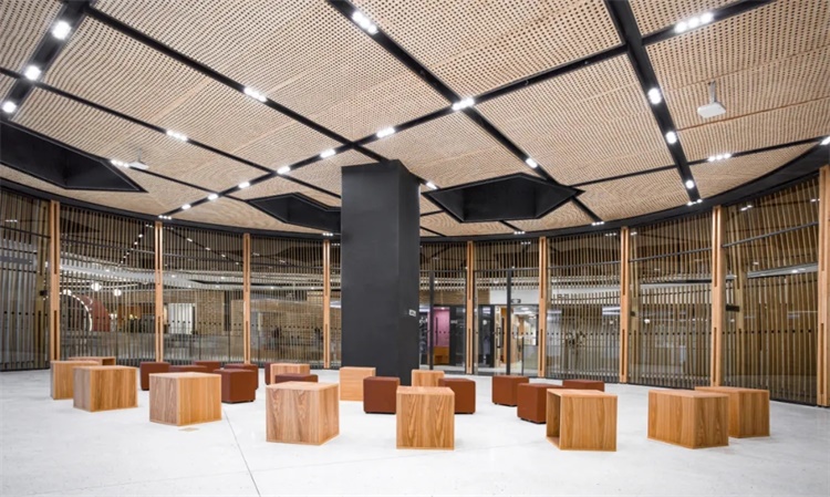 ▼办公区域中庭置入竹材结构,其他空间环绕布局