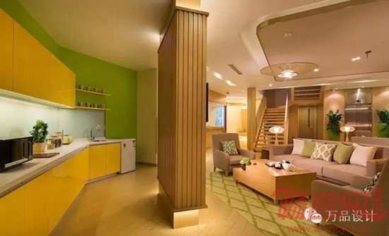 上海万科首个养老地产项目落地上海万科城市花园——社区内嵌入式的养老服务中心“智汇坊”。通过对小区内万科活动中心的改造,新添养老机构,为小区客户提供养老服务。这也是国内第一次在已有小区进行升级的养老项目尝试。项目以“O2 Life-氧气生活”为设计理念,通过健康、绿色环保、人文关怀三大主题入手进行设计。从自然与传统文化中寻找智慧生活美学之源。提供一处 Naturalhome ,始于心灵,鉴于生活。 围绕“O2 Life”的设计理念,室内装饰多采用绿色植物和色彩,从视觉、触觉、听觉、嗅觉及味觉5个方面嵌入,关注老年人的健康,打造氧气生活。