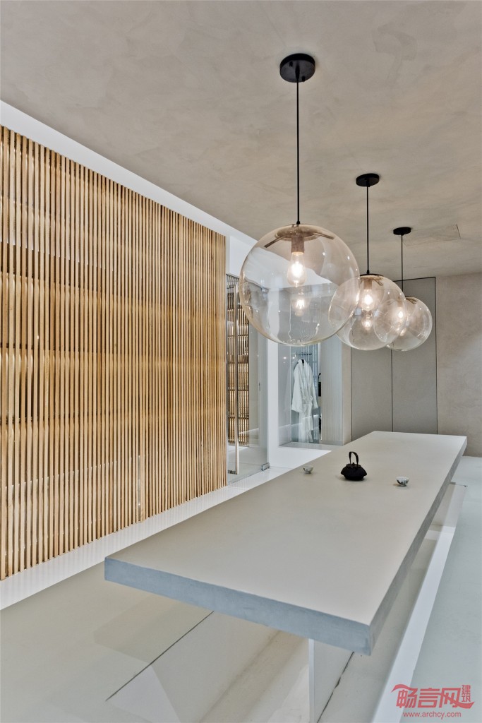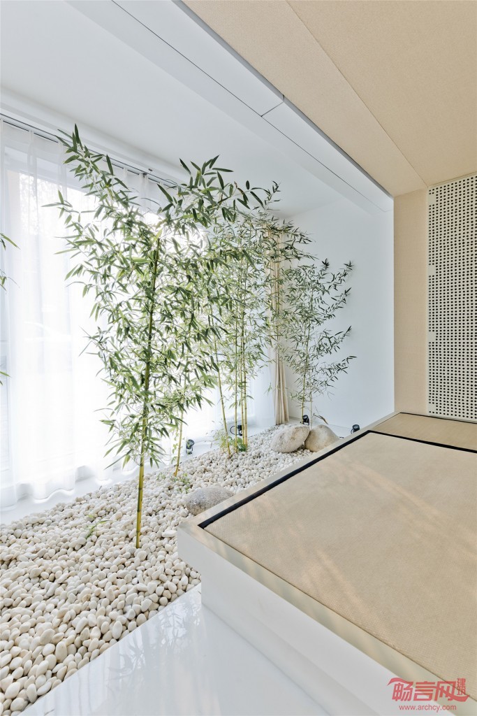设计的基本思路是利用材料和空间的变化来模糊原本室内的内外、界面之间的关系,创造一种开放而充满层次的漫游环境,让室内脱离局部的装饰,回归到自然、朴素、静谧的具有东方气息的居住氛围。