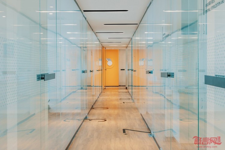 当人们看到医院走廊一排排例如种植科、放射科等科室门牌的时候,某种程度上承载了整个诊所病人的不安与焦虑。RIGI将所有的标识取消,在走道玻璃设计上做了阅读尺寸的字体标识,在这个面积的诊室里不存在空间识别混乱的问题,RIGI还设置了数字标识连接走廊和科室内,人们能看到的就是地面上不同的数字标识了不同的功能诊室,尽可能的消除看病的不安和焦虑是RIGI设计的核心观点。