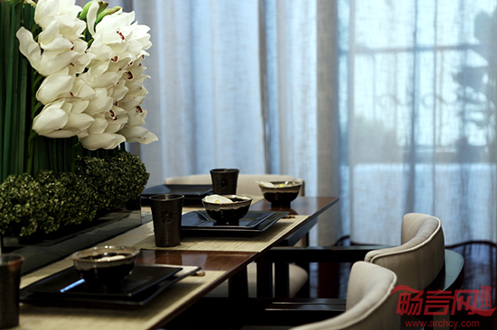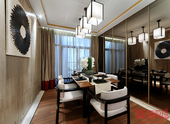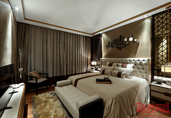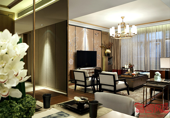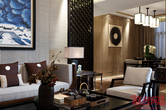 以新潮的现代设计理念,将随手拈来的中式古典元素融于其中,看似漫不经心的搭配,却深谙古典精髓意蕴,本案设计构思严谨,用色稳健大气,色彩上以代表稳重、成熟的马鞍棕为底色,配以理智、安详的藏蓝,彰显出高档的空间格调。空间上运用灯光和墙面造型把控室内气氛,营造出静谧、祥和的居家环境,具有使人沉浸其中,细细品读的悠长韵味。
