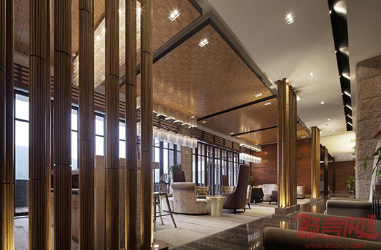 项目描述:本案的设计理念力求将自然风情融入会所情趣之中,打造出一个与周围环境和谐的会所。广泛地运用木材和其他的天然原材料,构建了新中式意境美之典范。空间汇聚了恢弘的气魄,层架结构的设计沉稳而大气,散发着东方文化中远离喧嚣的尊崇与高贵之感。锥形的吊灯设计如同繁星点点映照着苍穹,提升了空间的格调,柔和的灯光与原木条装饰的墙壁使氛围和谐而沉静。