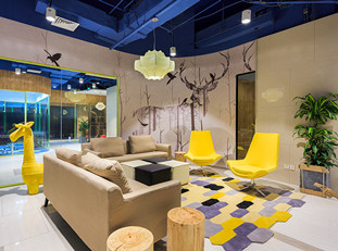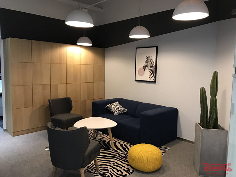 1楼入口通过律动的六边形框架搭配零星灯光的布局,呈现出极富张力的引导性空间,自然过渡到2、3楼的办公场所。办公规划从功能和软装两方面考虑。