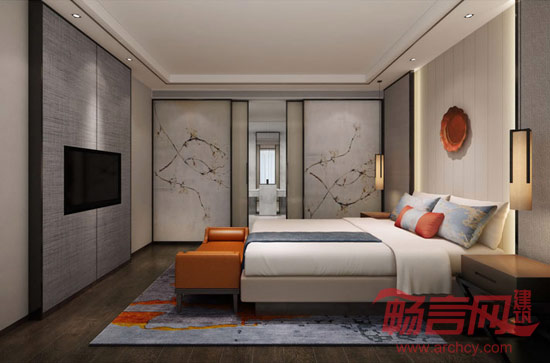 现代古典美:吸收的经典精髓,通过简化元素的利用创造出优雅的生活意境。设计师将古典美和现代时尚元素色彩充分连接,充分尊重了现代城市人在感官审美和生活功能上的双重需求。空间中的装饰元素不多,但将氛围上的优雅以轻描淡写的方式充分显现。交通流线十分顺畅。卧室沿袭了客厅的统一基调,诠释了新式优雅,淡雅的家具及灯光给予人们心理的温暖及舒适。