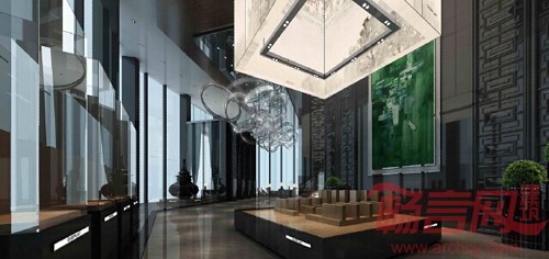 材质的整体设计体现出现代中式的恢弘大气,沉稳的中阶色调提升了空间的品质感,高调却不张扬,奢华却不露锋芒,使整个售楼空间与整体建筑设计上高度融合。