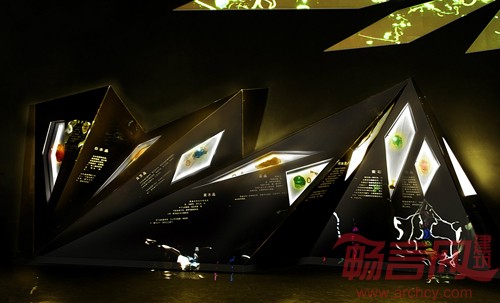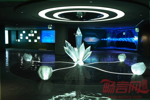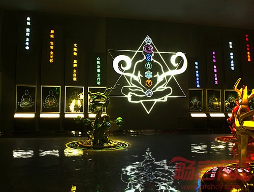 水晶与风水的展示,设计者不希望让参观者感觉仅仅是玄妙和古老,因此采用了更多具有未来感的风格进行表现。此区共分为水晶书房、奇门遁甲、水晶卧室、九宫格四大部分。